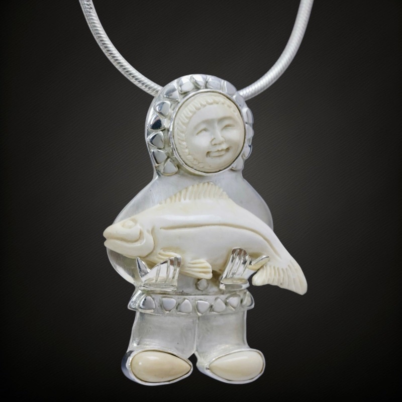 Fossil Mammoth Ivory &.925 Sterling SilverSize - 1 7/8" length x 1 3/8" widthCan be used as either a pendant or a brooch. Each Ivory pin is named after a city or town in Alaska and represents ancient activities familiar in native Alaskan cultures.Woolly Ma
