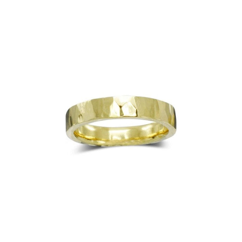 Hammered Flat Yellow Gold Wedding Ring