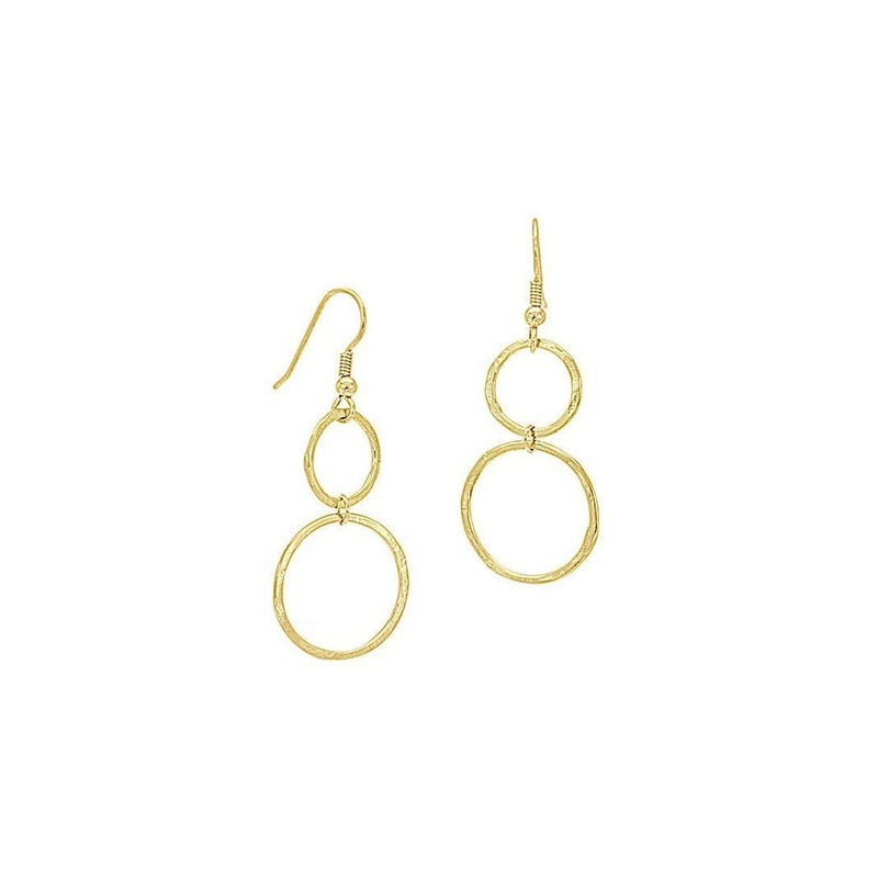 Hammered Hoop Yellow Gold Dangly Earrings