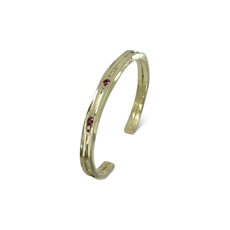 Hammered Ruby and Diamond Solid 9ct Gold Bangle