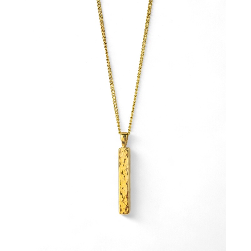 20The Hammered Yellow Gold Bar Pendant is handmade from recycled gold and is also available in 18ct Yellow gold.Eco-Friendly Elegance: We are proud to use recycled gold in the creation of our contemporary pendants, promoting sustainability and responsible
