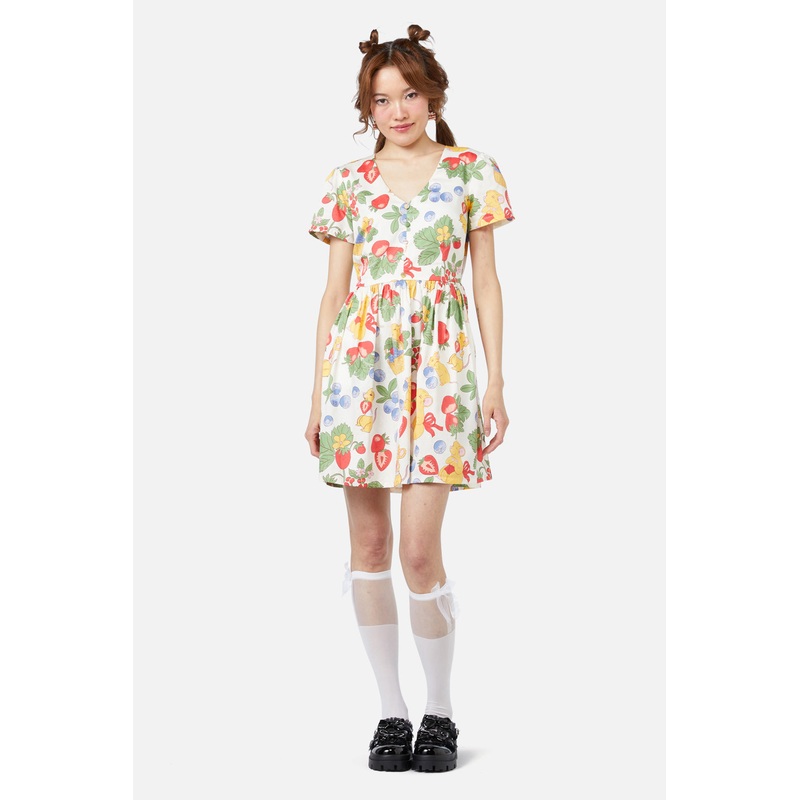 Printed Dress-Features 'Hamper' Custom Artwork-Has Button Front Detail-Classic Fit And Flare Cut-Short Sleeves-Made From Cotton Sateen-Available In MultiProduct Code: DGFY131