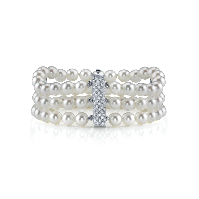 You’ll appreciate the elegance of this stunning piece adorned with three beautiful Japanese Akoya pearls. Each pearl showcases a captivating luster that instantly elevates any outfit. The exquisite diamonds encasing the clasp provide a touch of luxury without overwhelming the pearls’ natural beauty. This bracelet is not just jewelry; it’s a statement of sophistication that you’ll love to wear for any occasion.