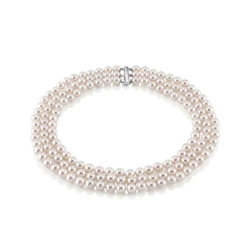 Hanadama Akoya White Pearl Triple Strand Necklace
