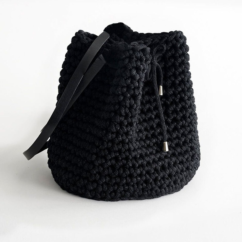 The Handmade Bucket Bag in Black is a super trendy bucket bag in a new handmade interpretation. Made of iota yarns which are composed of cotton and polyester. Bright, beautiful and perfectly designed.iota bags are made by women who are otherwise unable to