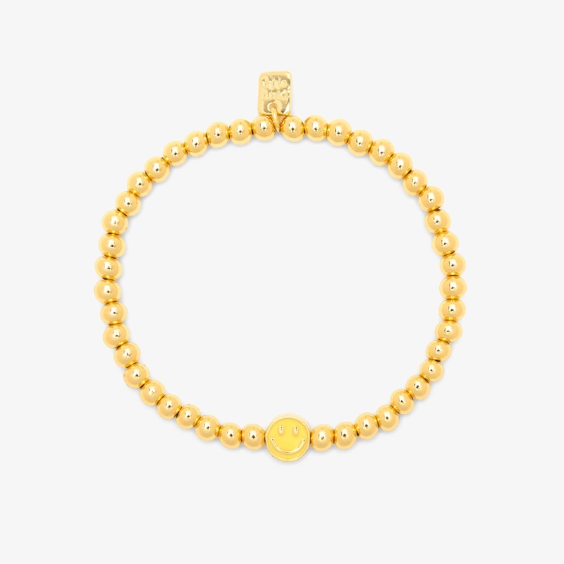 Spread smiles with the Happy Face Gold Bead Stretch Bracelet your daily dose of happy! Each bead is a tiny beacon of joy, while the double-sided happy face adds extra positivity.Plus, it stretches for a comfy fit, so happiness follows you everywhere. Easy