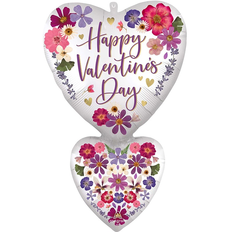 Elevate your Valentine’s Day celebration with our Happy Valentines Day Pressed Flowers 78cm SuperShape Foil Balloon. This double heart-shaped balloon features the heartfelt message ‘Happy Valentine’s Day’ surrounded by a delicate pressed flower print. The fusion of romance and nature creates a stunning visual that captures the essence of love. Combine with our range of Valentine’s Day balloons to mix and match and create the perfect scene for your party.