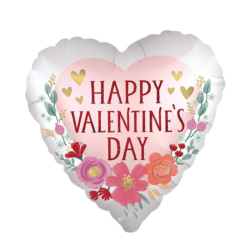 Item Includes:Balloon.Features:Heart-shaped foil balloon.'Happy Valentine's Day' printed message.White and pink background with pretty florals.Self-sealing.Sizing:45cm / 18in.Material:100% Foil.Please note: Balloons do not come inflated. Helium not include