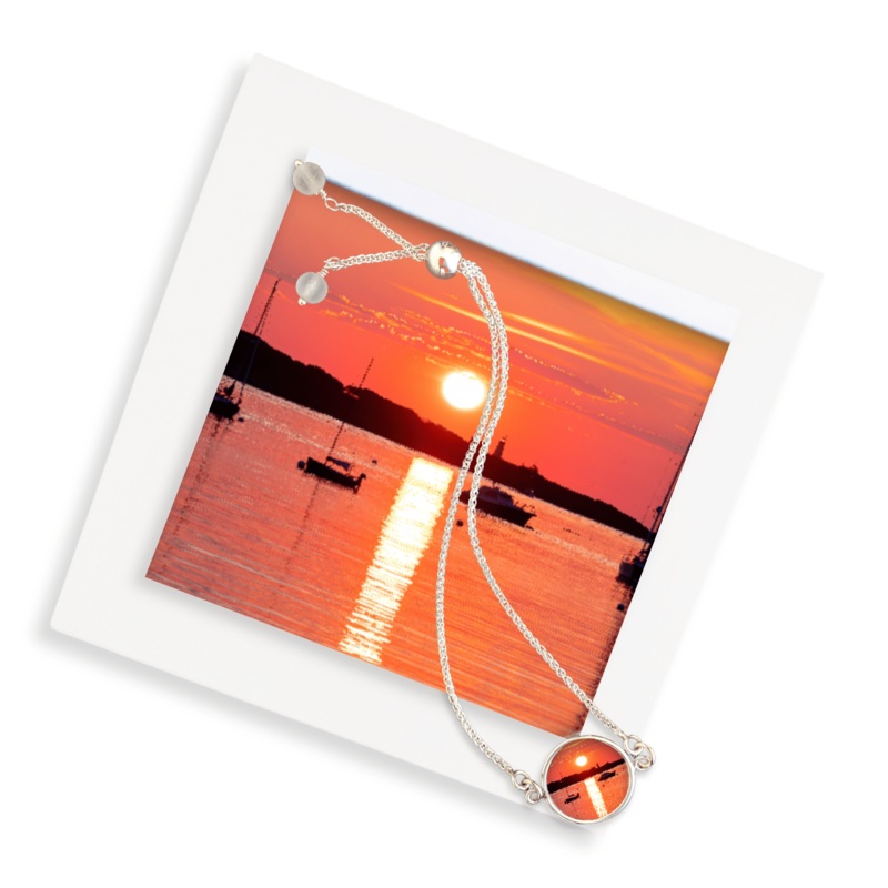 ROUNDSUNSET BRACELETFEATURES:This .925 sterling silver bracelet is platedin fine silver to ensure a bright white color and to help protect against tarnish.The bracelet slides to extend to 8.5 inches.The one-of-a-kind image is coated in a waterproof resin.