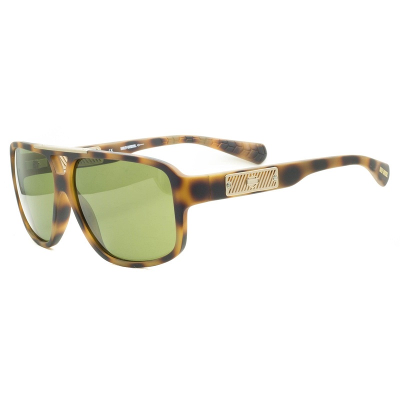 HARLEY DAVIDSON Full Rim Sunglasses -100% Authentic - HD 2012 52Q Matte havana brown acetate frames with satin gold metal top Matching arms inlaid with gold metal plaques and Harley Davidson logos Dark green tinted lenses Brand new Lens Width = 60mm Frame