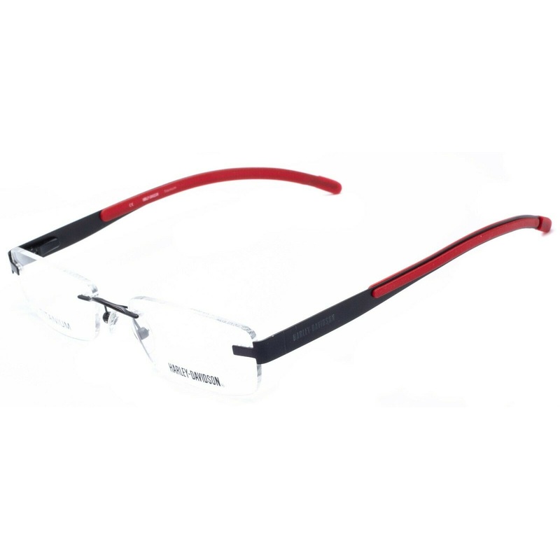 HARLEY-DAVIDSON Rimless Frames - 100% Authentic - HD 417 BLKSatin black titanium frames and arms with HD logosMatte red rubber arm coversAdjustable nose pads for a comfort fitNever been wornLens Width = 53mmLens Height = 29mmBridge = 18mmTemple (Arm Length