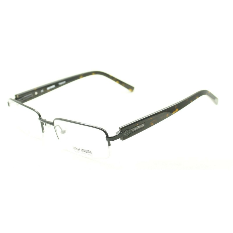 HARLEY-DAVIDSON Half Rim Frames - 100% Authentic - HD 425 BLKPolished black titanium framesGloss havana dark brown acetate arms inlaid with Harley Davidson logosPrecision spring hinges and adjustable nose pads for a comfort fitNever been wornLens Width = 5