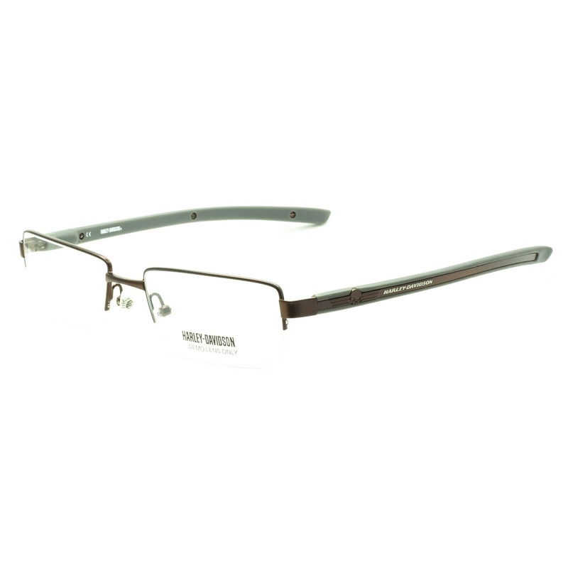 HARLEY-DAVIDSON Half Rim Frames - 100% Authentic HD337 SBRN Satin brown metal frames and arms engraved with HD logos Matte grey acetate arm covers Precision spring hinges and adjustable nose pads for a comfort fit Brand new - Never been worn Lens Width = 5