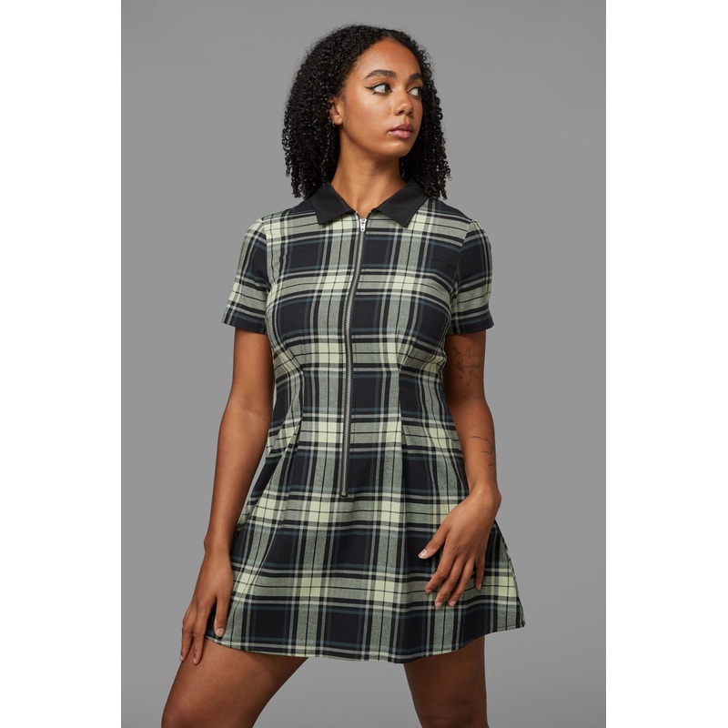 Tartan Dress-Features ‘Haunted Bloom’ Tartan-Includes Contrast Collar Detail-Has Cf Zipper Detail-Made From Cotton -Available In Black/Sage