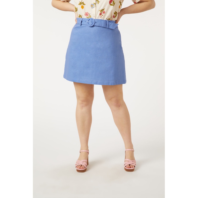 Classic mini skirt - transeasonal mini skirt in a lovely shade of blue- made from softened mid weight linen cotton- high waisted - A line mini - style with the matching self fabric belt - hidden back zipper - handy pockets - available in blueProduct Code: