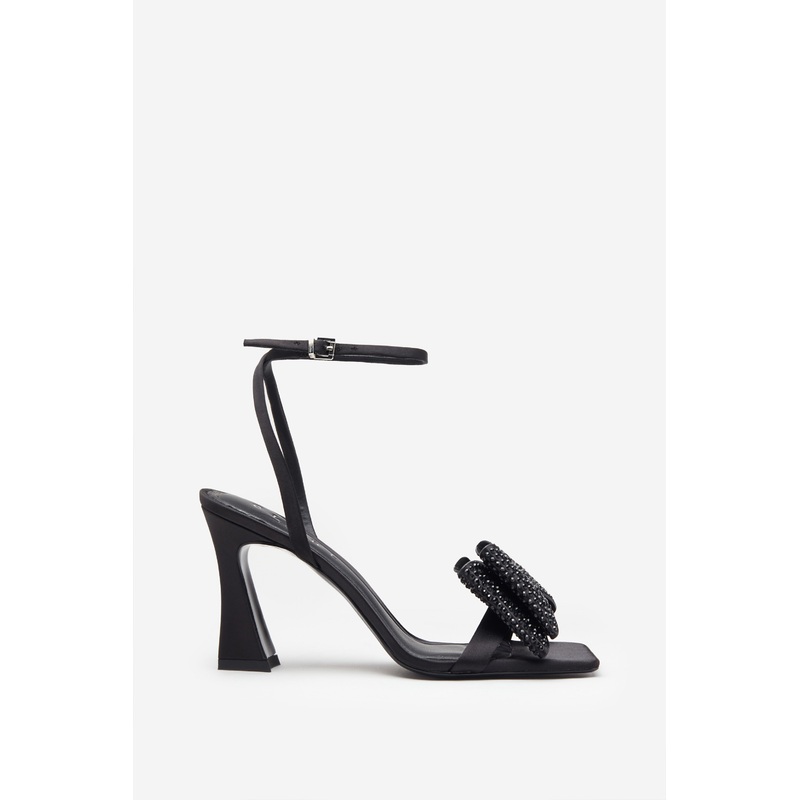 Headlines | Black Ankle Strap Heeled Sandals With Diamante Bows