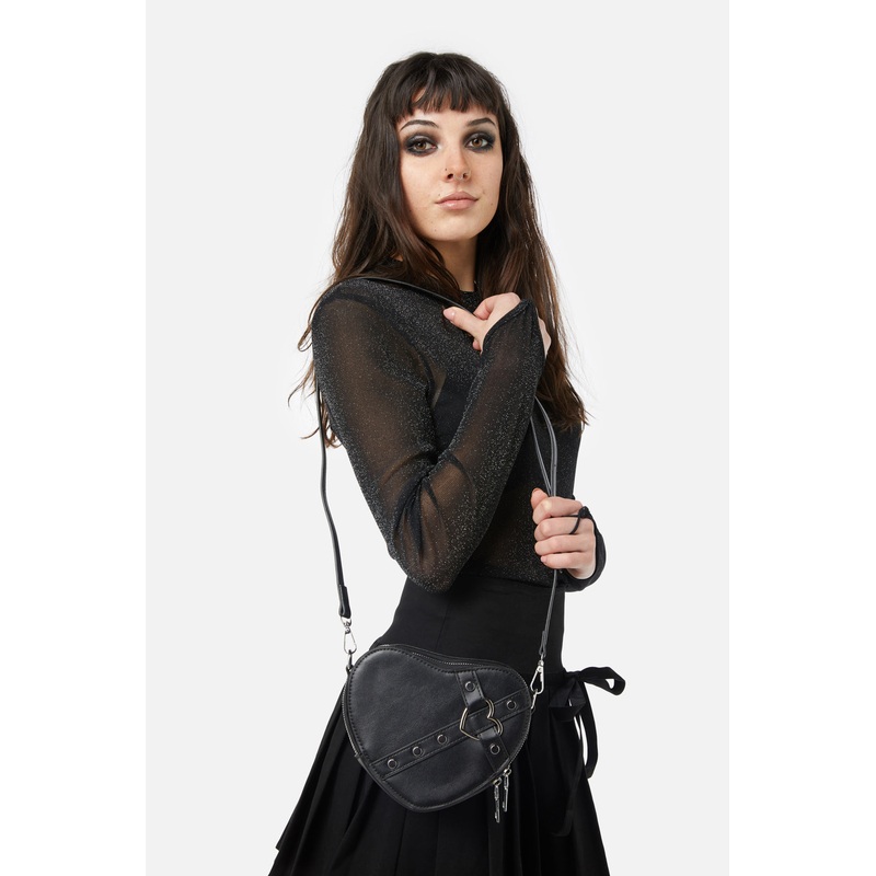 Heart Cross Body Bag- A cool and easy way to enhance your look- Simple yet stylish bag- Cross Body- Heart shape- Silver toned hardware- Zip closure- Adjustable and removeable strap- Vegan leather- Available in pink or black- Approximate size of 18cm x 15cm