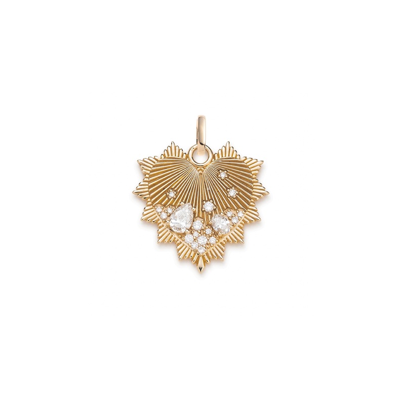 DescriptionHandcrafted in 18k yellow gold with artfully scattered diamonds, our Medium Heart Medallion celebrates seven types of love as defined thousands of years ago by the ancient Greeks: Eros (romantic love), Philia (friendship), Agape (universal love)