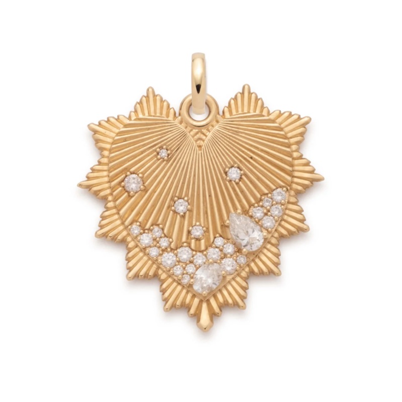 DescriptionHandcrafted in 18k yellow gold with artfully scattered diamonds, our Oversized Heart Medallion celebrates seven types of love as defined thousands of years ago by the ancient Greeks: Eros (romantic love), Philia (friendship), Agape (universal lo