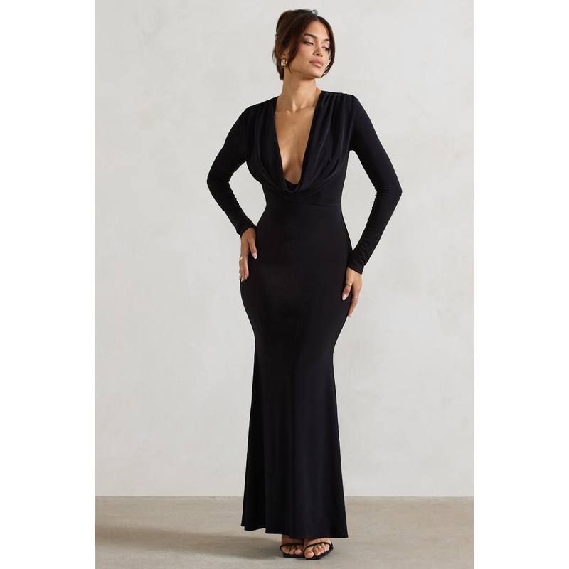 Heavy Heart | Black Cowl-Neck Long-Sleeve Maxi Dress