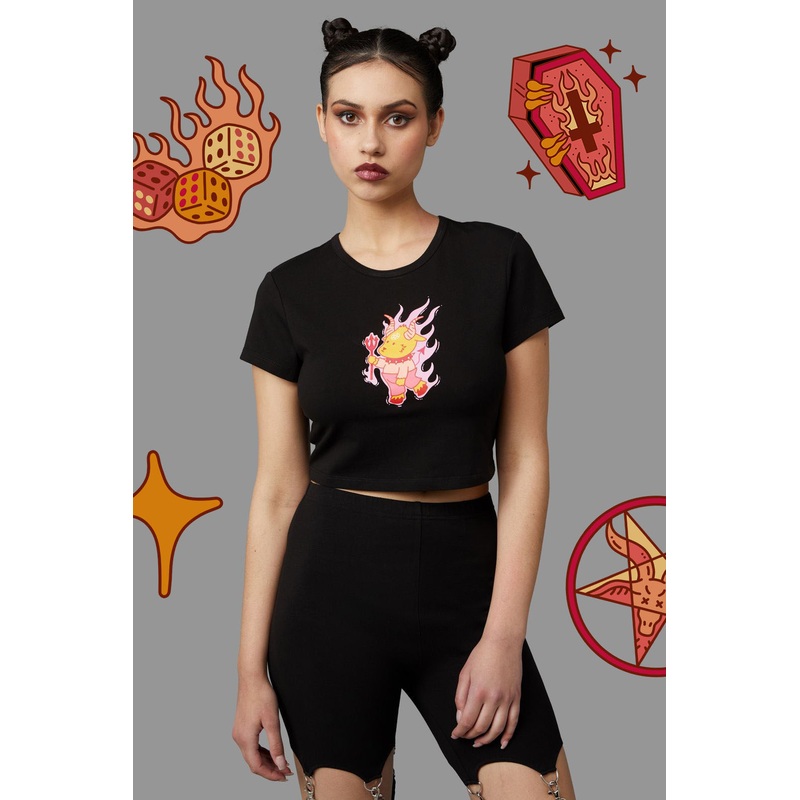 Fitted Tshirt- Round Neckline- Short Sleeves- Fitted Shape- 'Hellish' Placement Print On Front- Made From Stretchy Cotton Jersey- Available In BlackProduct Code: BGFW236