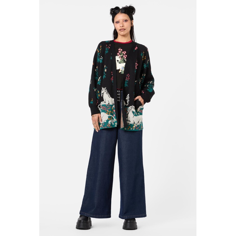 LONG CARDIGAN – RELAXED FIT – LONG SLEEVES – RIB KNIT AT NECKLINE AND SLEEVE CUFFS – ‘HERALDRY’ ARTWORK BORDER PLACEMENT – MADE FROM SOFT KNITTED COTTON – AVAILABLE IN BLACK