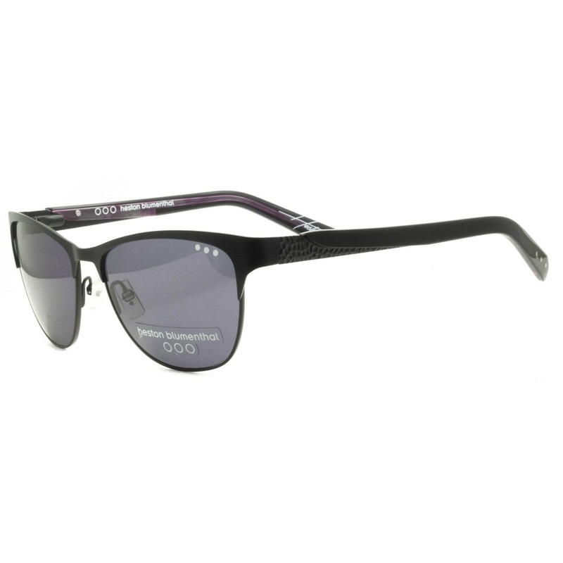 Heston Blumenthal Full Rim Sunglasses - Accent Col: 004 Cat 3Satin black metal frames, gloss black over purple acetate armsViolet tinted lensesBrand newLens Width = 55mmFrame Height = 45mmBridge = 15mmTemple = 135mmSUPPLIED WITH AN UNBRANDED CASE AND A PLA