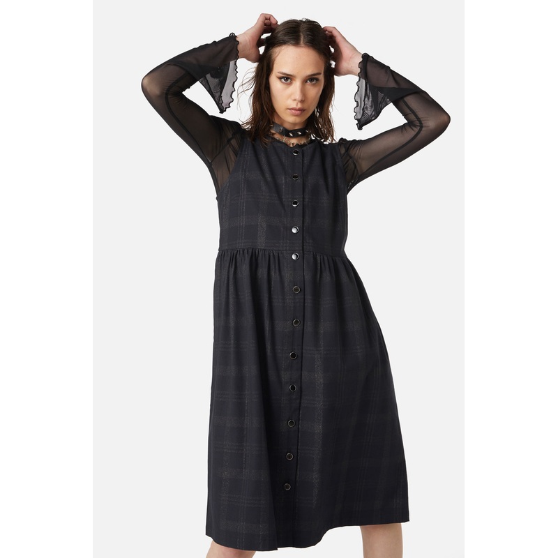 Tartan Pinafore- Relaxed Fit- Gathered Skirt- Round Neckline- Button Down Closure At Front- Pockets At Sides- Made From Polyester/Viscose Tartan- Available In BlackProduct Code: DGFW095