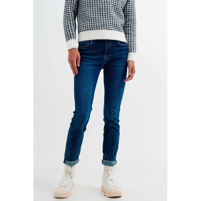 High Waisted Skinny Jeans In Colour Mid Blue Wash