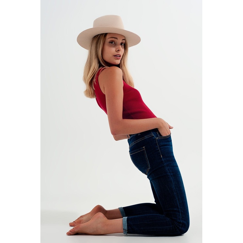 Finding the perfect pair of jeans can be a challenge, but our high-waisted skinny jeans in a mid-blue wash are designed to meet all your needs. These jeans are crafted to stay in place, maintaining their fit and shape throughout the day without stretching out. The high-waist cut offers a flattering silhouette, hugging your curves with just the right amount of stretchy comfort.
