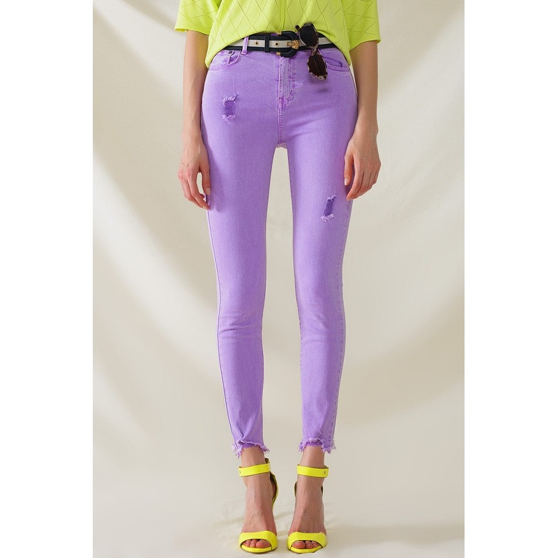 Whether you’re dressing them up with heels for a night out or keeping it casual with sneakers, the High Waisted Super Skinny Jeans in Purple offer versatility and comfort that will elevate your wardrobe effortlessly.