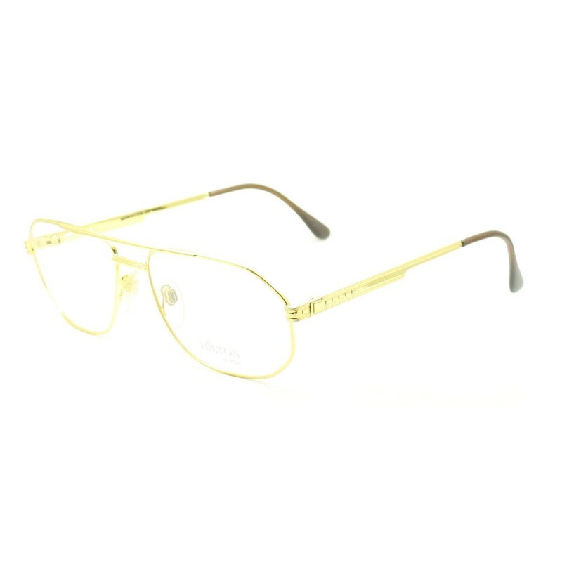 HILTON EYEWEAR Full Rim Frames - 100% Authentic - Manhattan 206 01 - 22 KGPPolished gold metal frames and sides engraved with Hilton logosGloss brown acetate arm endsPrecision spring hinges and adjustable nose pads for a comfort fitNever been worn - Brand