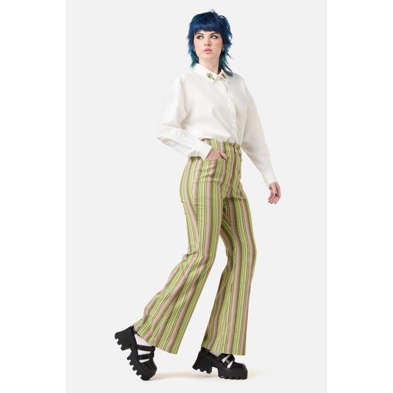 70S Vibe Corduroy Pants- Fitted Shape- Flared Leg At Hem- Pockets At Sides- Fly Closure At Front- Vertical Stripe Pattern- Made From Cotton Corduroy- Available In MultiProduct Code: DGFZ157