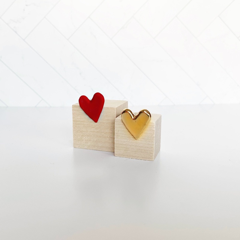 Carry around these 2 beautiful funky hearts. One gold, one red. Or get two pairs to match both ears.
