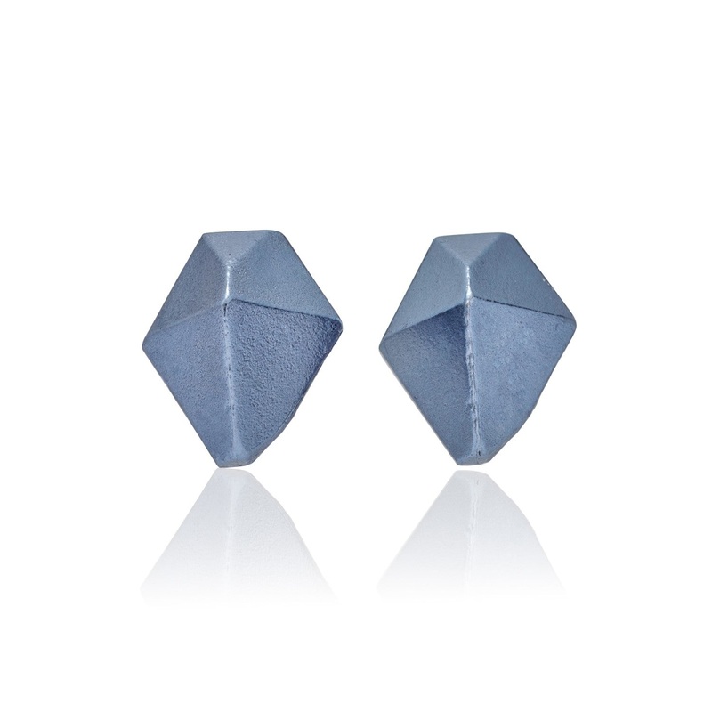 TheHotRocks Studs - Slate Greyaremade from recycled silver with anano-ceramic coating. These colourful stud earrings are created as an exact replica of a quartz termination cast through the lost wax casting process. Each flat edge reflects at different ang