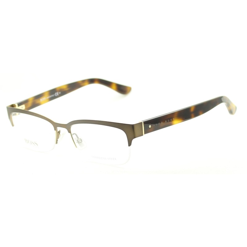 HUGO BOSS Half Rim Frames - 100% Authentic 0746 KJS Satin brown stainless steel frames Gloss havana brown acetate arms inlaid with Hugo Boss logos Adjustable nose pads for a comfort fit Brand new - Never been worn Lens Width = 53mm Frame Height = 35.5mm Br