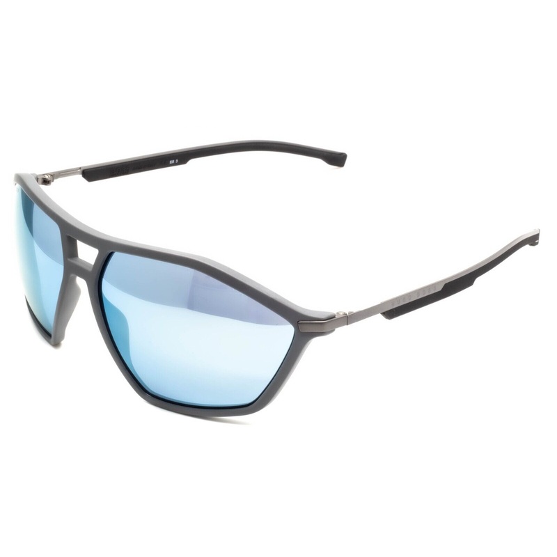 HUGO BOSS Full Rim Sunglasses - 100% Authentic - 1258/S RIW3JMatte grey acetate framesSatin gunmetal on black rubber armsBlue mirror tinted lensesBrand new - Never been wornLens Width = 62mmFrame Height = 52mmBridge = 14mmTemple (Arm Length) = 130mmMeasure