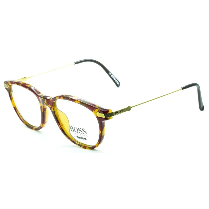 HUGO BOSS by Carrera Vintage Full Rim Frames100% Authentic - 5115 36Gloss marble brown acetate framesPolished gold metal arms with Boss logosGloss brown acetate arm endsBrand new - Never been wornLens Width = 51mmFrame Height = 43mmBridge = 17mmTemple (Arm