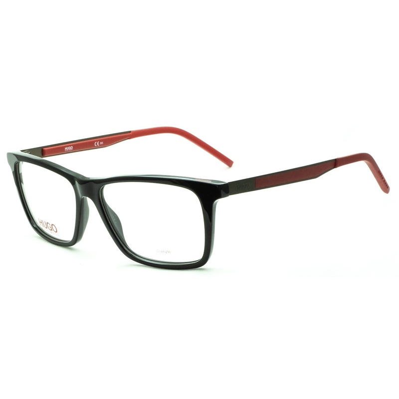 HUGO BOSS Full Rim Frames - 100% Authentic HG 1140 807 Gloss black acetate frames Satin light green metal arms with red Hugo logos Matte red acetate arm inserts and end covers Brand new - Never been worn Lens Width = 55mm Frame Height = 43mm Bridge = 15mm