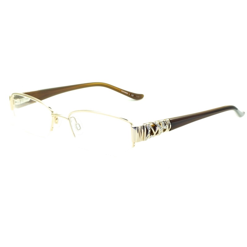 INGA Half Rim Frames - 100% Authentic - 25239300Polished gold metal frames and stone set sidesGloss brown acetate arms Precision spring hinges and adjustable nose pads for a comfort fitBrand new - Never been wornLens Width = 53mmFrame Height = 30.5mmBridge