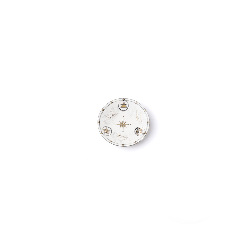 Plates that are perfect as a ring dish, incense holder, or a teacup saucer. In collaboration with Laboratorio Paravicini, this Miniature Plate represents Internal Compass. The compass is comprised of the four major cardinal directions; North, South, East & West. The directions are in mirror image as a metaphor that only with self-reflection can each of us find what has heart & meaning in life and then determine the next step towards it. When the wearer looks in the mirror then the right direction can be found.