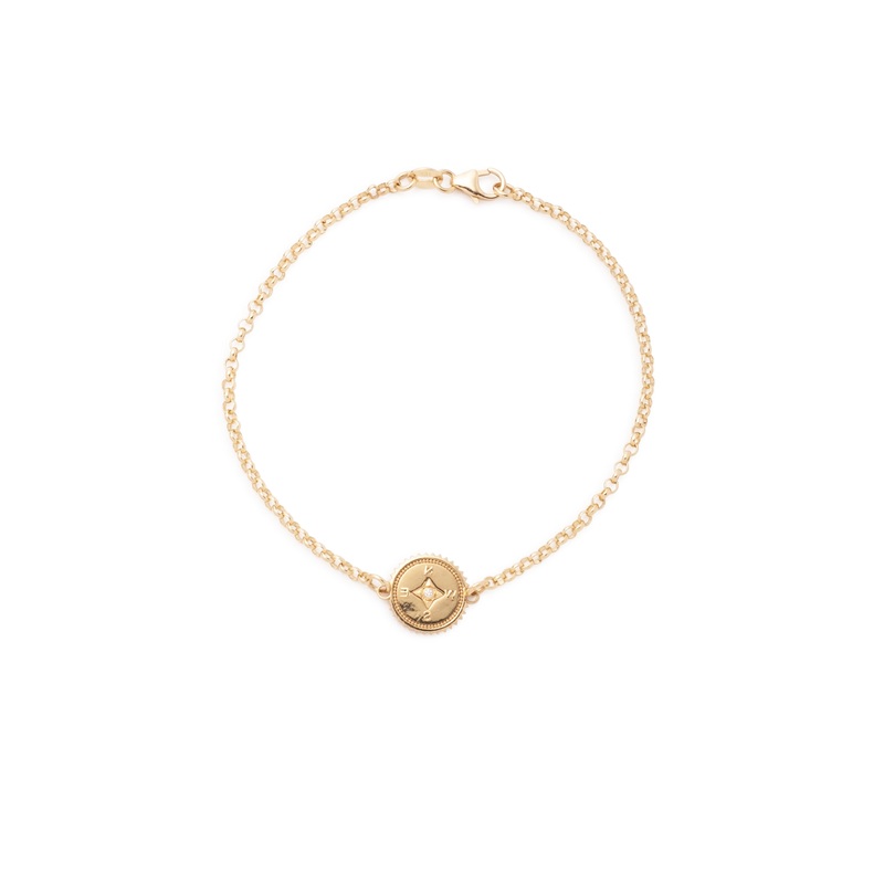 DescriptionHandcrafted in 18k Yellow Gold Stationary Bracelet symbolizes Internal Compass All change starts within and then radiates outward. The Internal Compass represents the belief that life is a continual process of adjusting course to align better wi