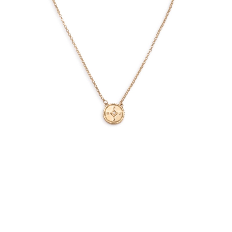 DescriptionHandcrafted in 18k this Yellow Gold Fine Belcher Stationary Necklace symbolizes Internal Compass. All change starts within and then radiates outward. The Internal Compass represents the belief that life is a continual process of adjusting course
