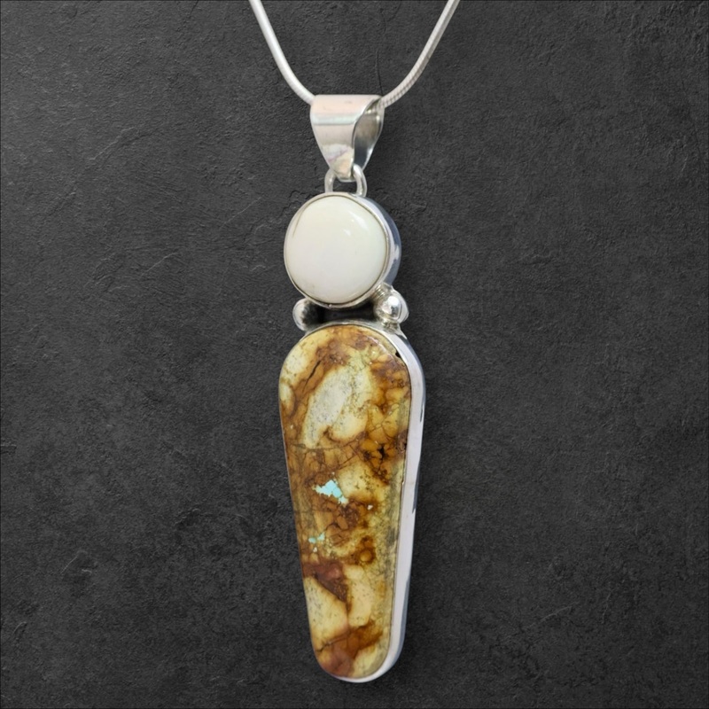 Fossil Walrus Ivory, Boulder Turquoise & .925 Sterling SilverSize - 1 1/4" length x 7/8" widthInformation card includedChains are available...Click Here!