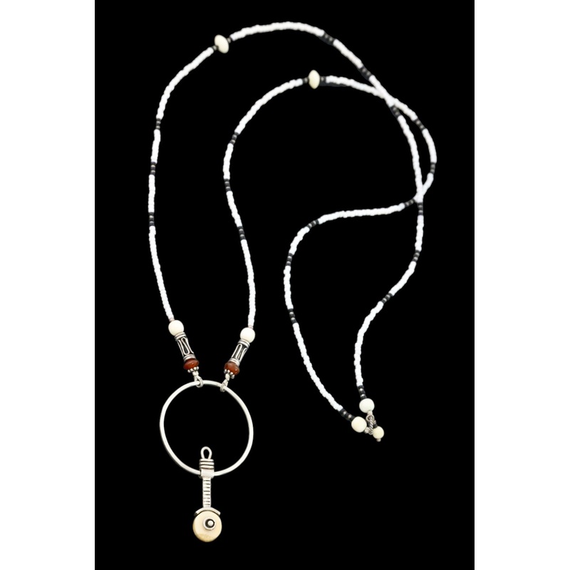 Fossil Walrus Ivory & .925 Sterling Silver beaded Necklace