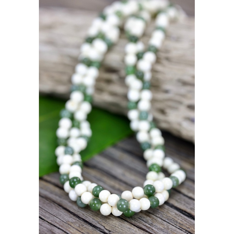 4mm Mammoth Ivory and Jade Bead NecklaceLength: 16"Ivory twist claspJade is Alaska's State Gemstone and Mammoth Ivory is the state fossil