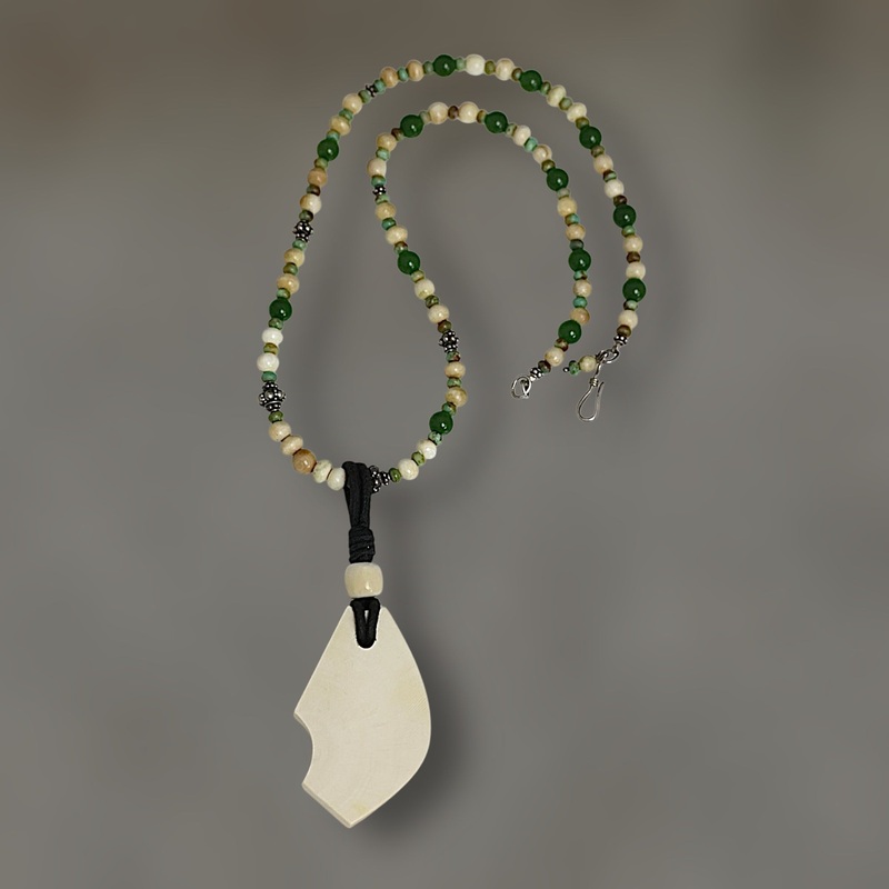 Fossil Mammoth Ivory, Jade, Turquoise & .925 Sterling SilverOne of a kindNecklace Size - 20" LengthFossil information card included
