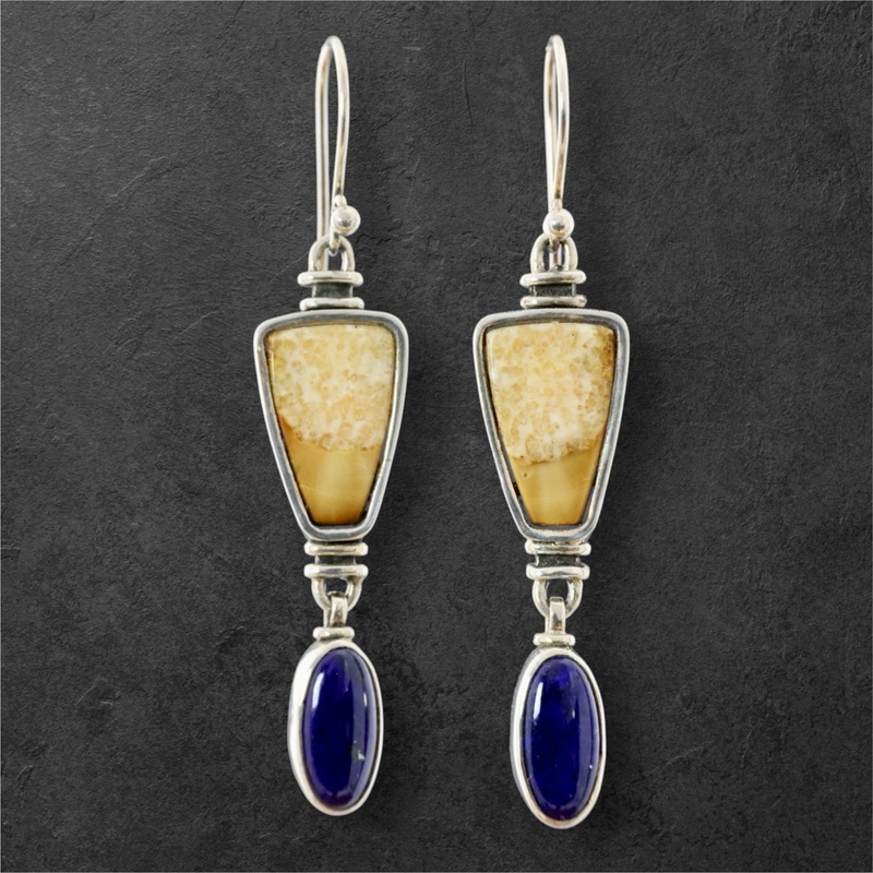 Fossil Walrus Ivory, Lapis & .925 Sterling SilverSize - 1 5/8" lengthIncludes Artist Card & Material Info card