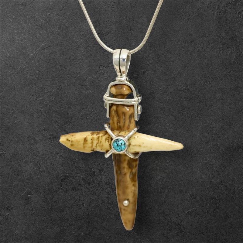 Fossil Walrus Ivory, Turquoise & .925 Sterling SilverSize - 1 1/2 lengthOne of a kindFossil information card includedChains are available...Click Here!