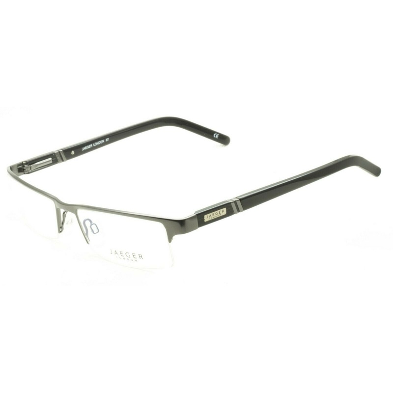 JAEGER Half Rim Frames - 100% Authentic - London 07 C1Satin gunmetal framesGloss black acetate arms with Jaeger logos on transparent black acetate sidesPrecision spring hinges and adjustable nose pads for a comfort fitNever been wornLens Width = 52mmFrame